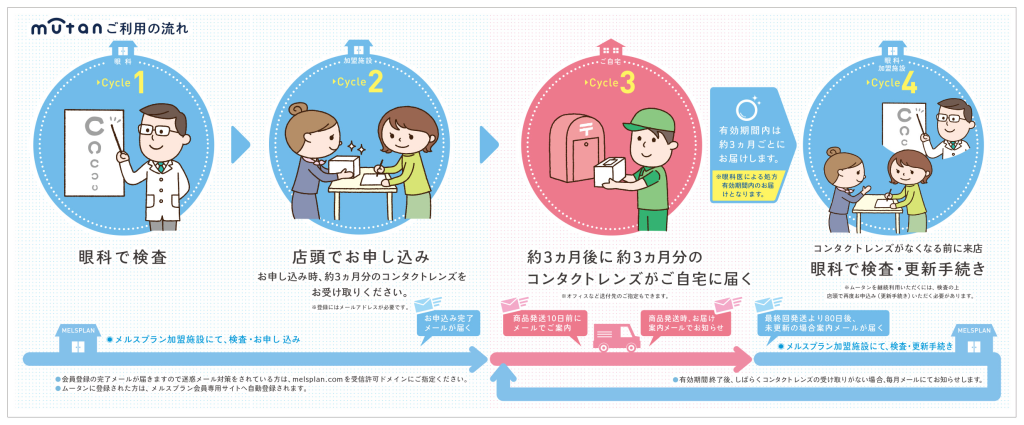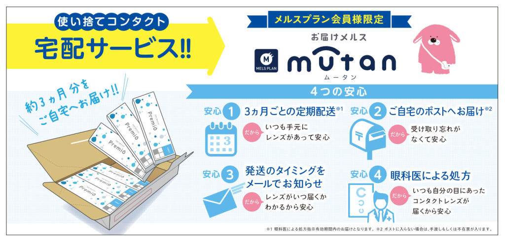 ムータンは【メルスプラン】で利用できるコンタクトレンズの定期配送サービスです。